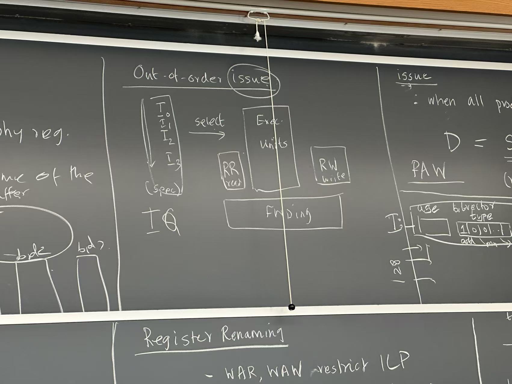 - Choose up to \(W\) eligible entries and issue to ALU