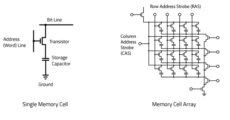 - Address -> decoder -> word line cell -> subarray -> mat -> sub-bank (~4) -> bank -> chip -> rank -> channel -> DIMM