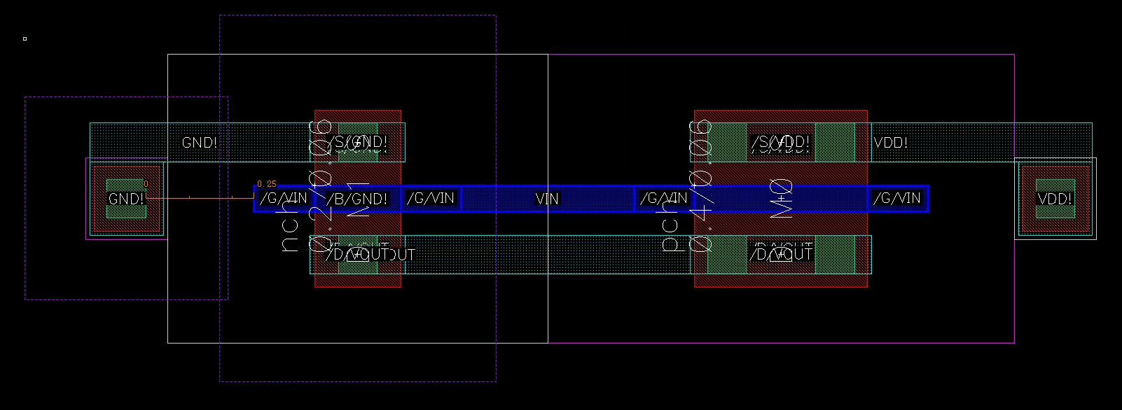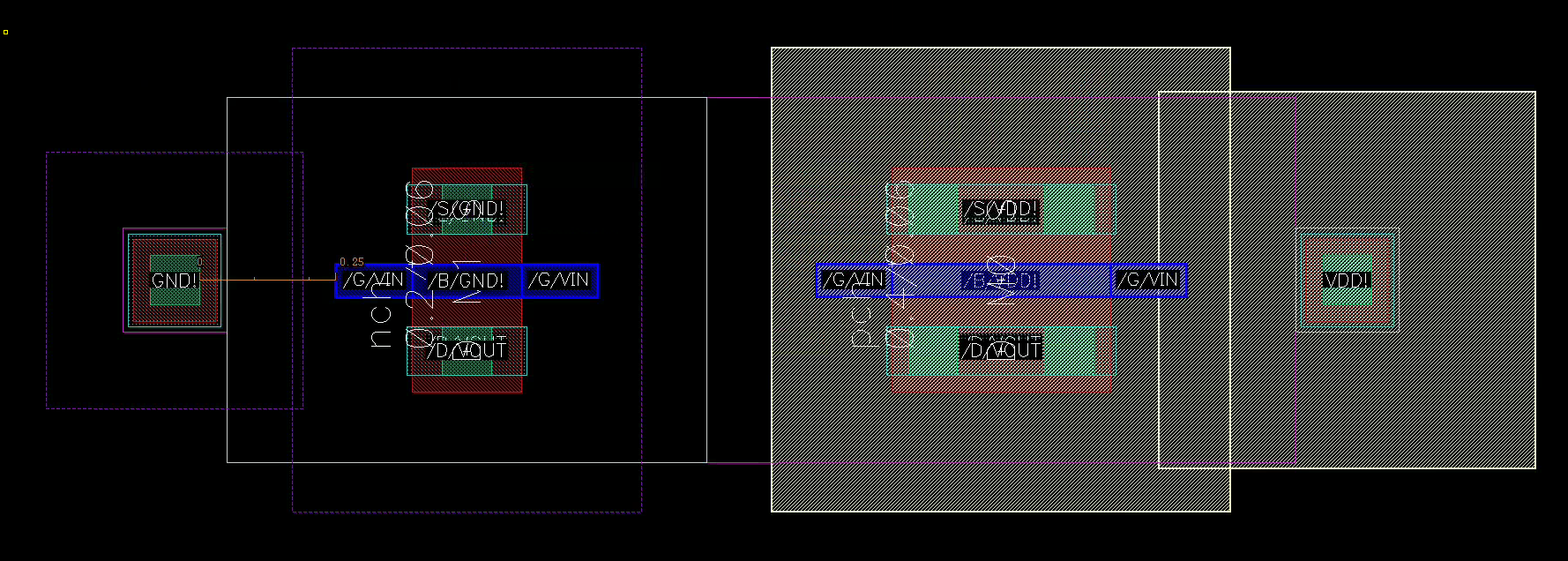NW(N-well): where PMOS sitSUB(P-well, substrate): where NMOS sit- Marked by