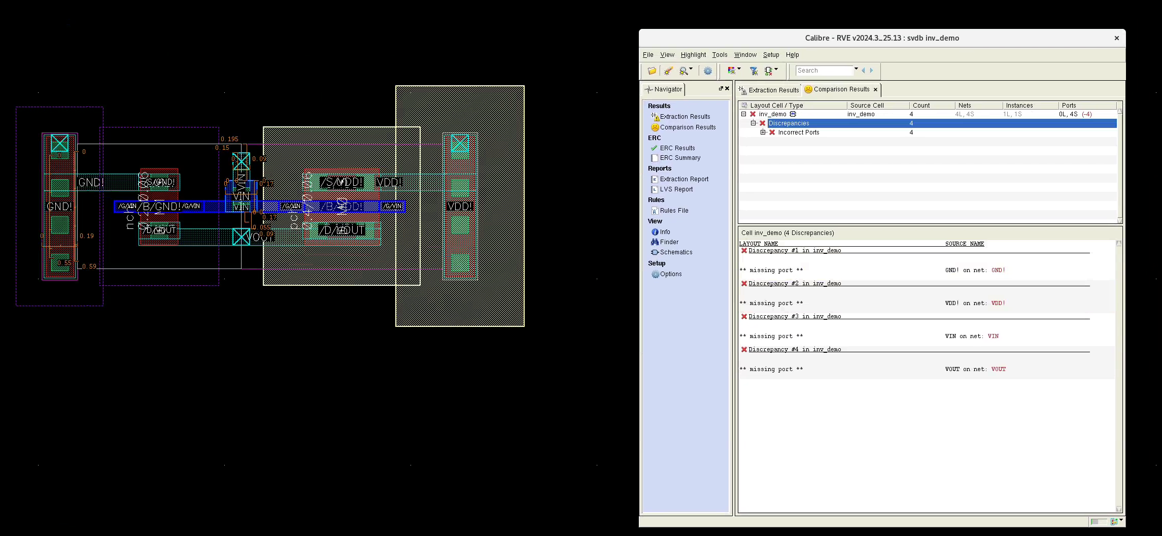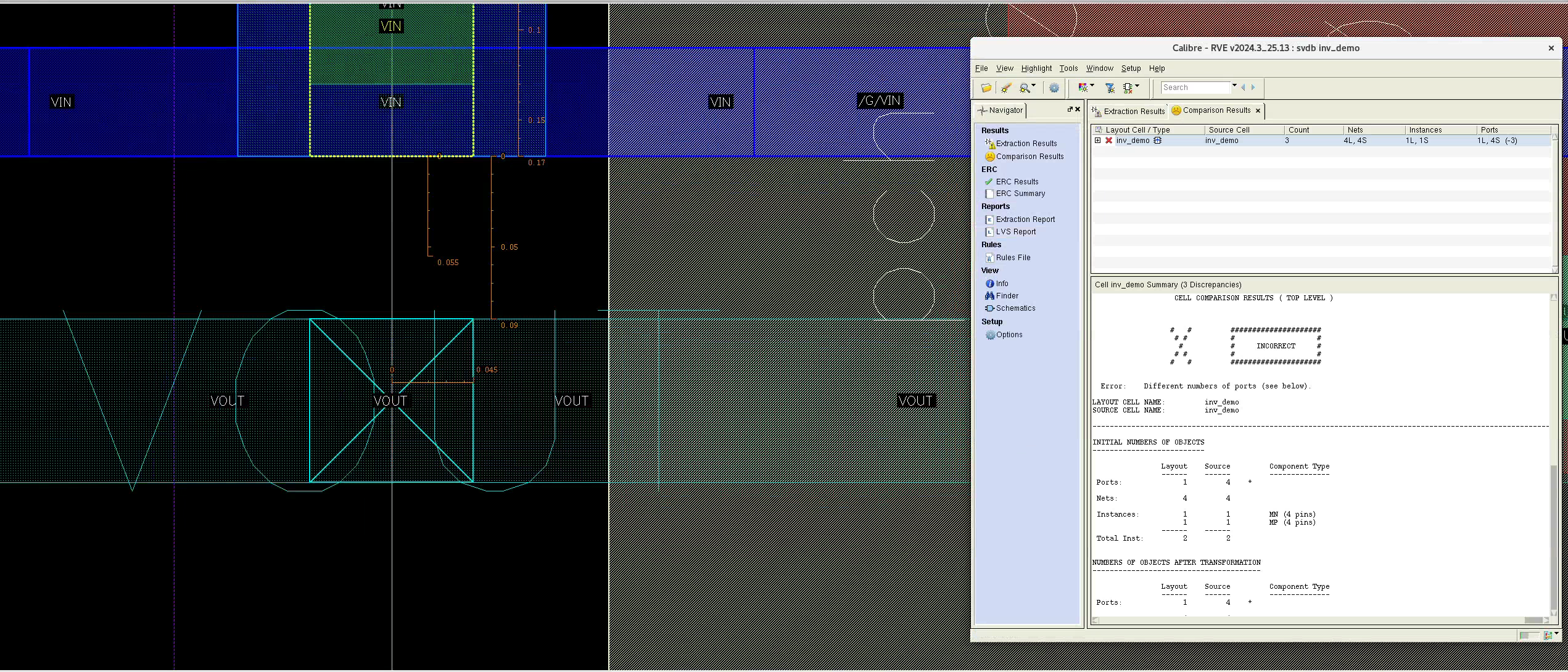 Now, as a proof of concept, run LVS again to see if the error count drops to 3