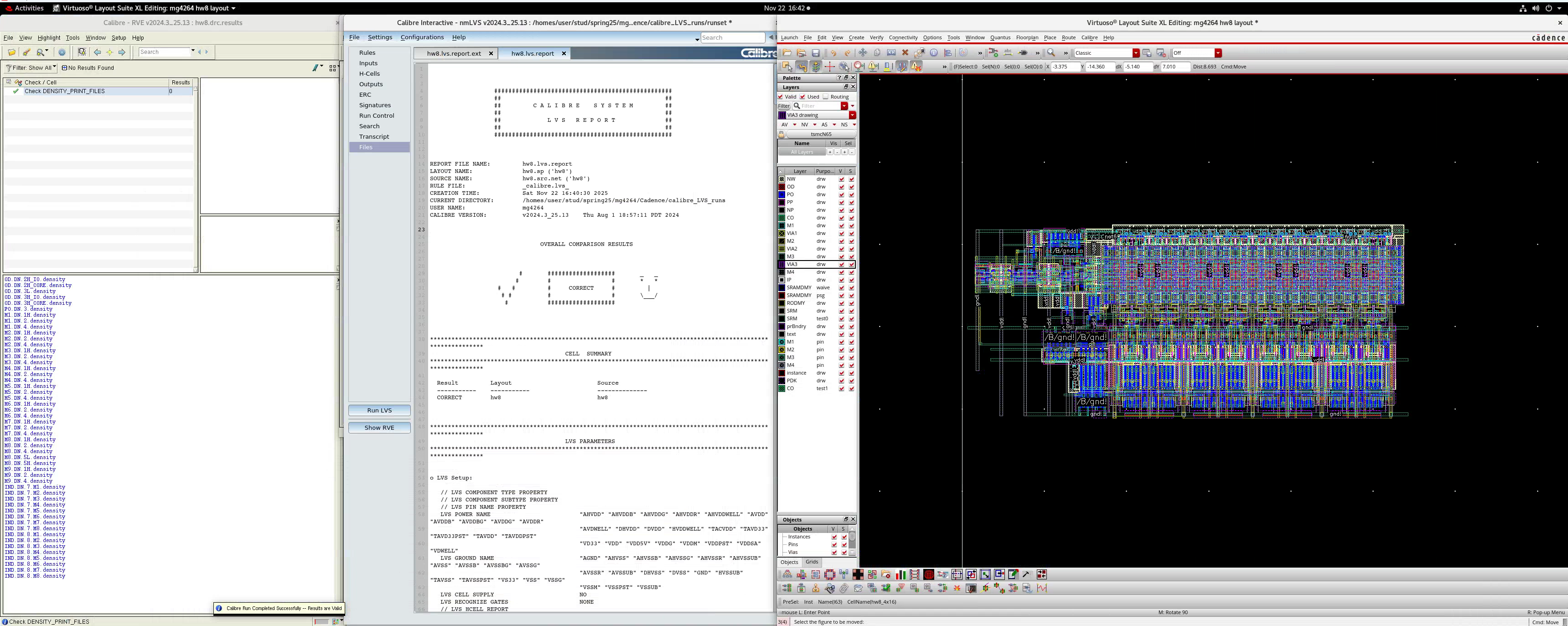 You may get a few LVS warnings on M2 pin short. This is from the v1d1_x1 cells’ M2 pin label. The M4 pins are fine.