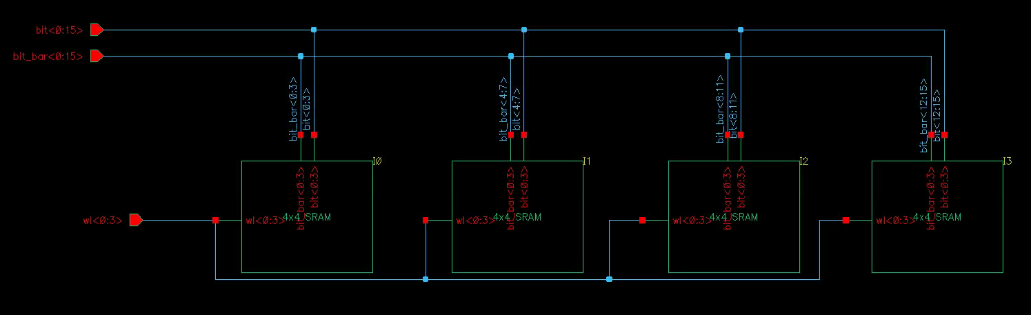 - Create a 4x16 schematic and symbol with four of your 4x4